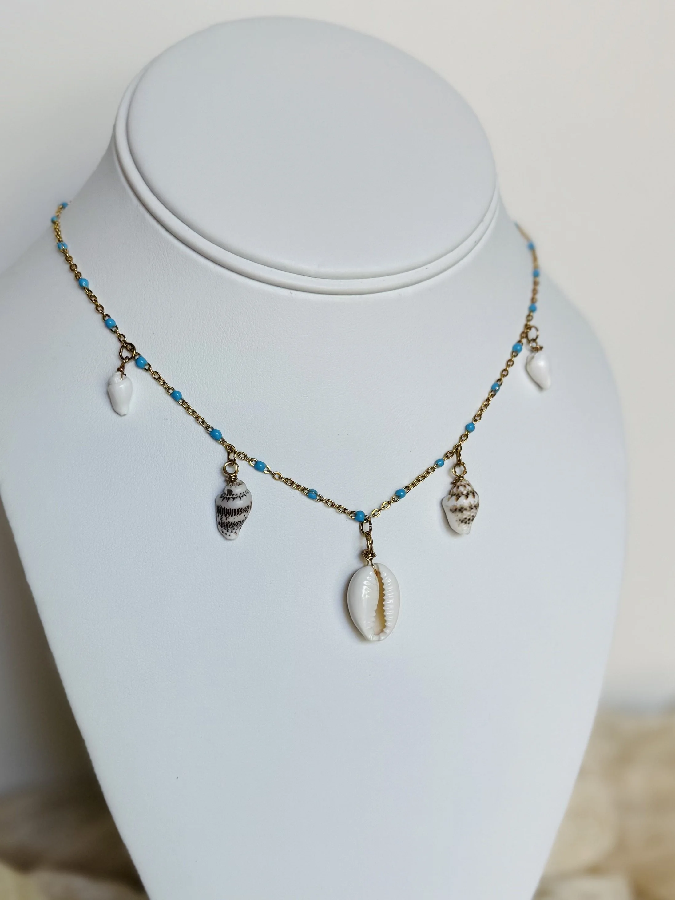 The chain is crafted from high-quality gold-plated stainless steel and can be customized to your perfect length — 14, 16, or 18 inches. Lightweight, unique, and made to last, this necklace brings a little ocean-inspired beauty wherever you go.