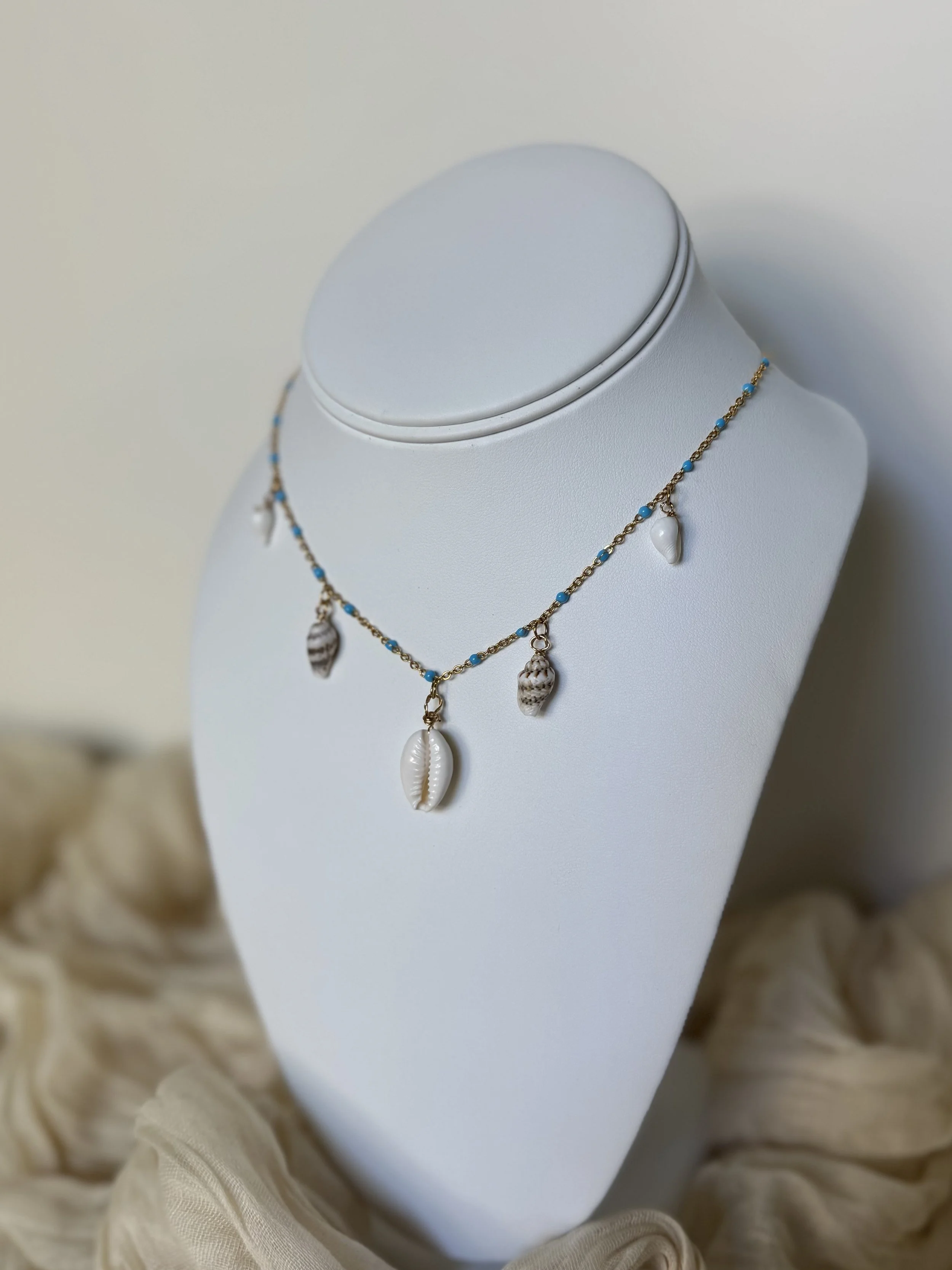 Tarnish-resistant and gold-plated stainless steel, this sea shell charm necklace is a one-of-a-kind piece handmade in Southern California. Inspired by the breezy and elegant energy of Dana Point, each necklace features natural sea shells wrapped in durable, tarnish-resistant gold wire for a coastal touch you can treasure every day.